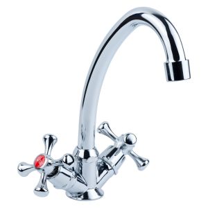 Змішувач TAU S85 ½" для кухні економ на шпильці VN-2B160C (9885110) — це надійний і доступний змішувач для кухні, що поєднує простоту конструкції та зручність у використанні. Має хромоване покриття, стійке до корозії, і поворотний вилив, який забезпечує комфорт під час миття посуду.