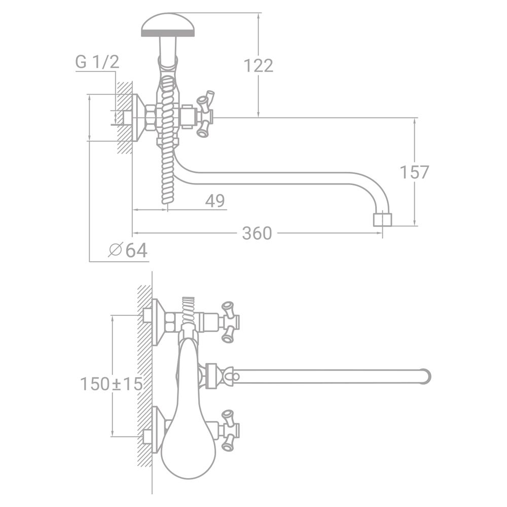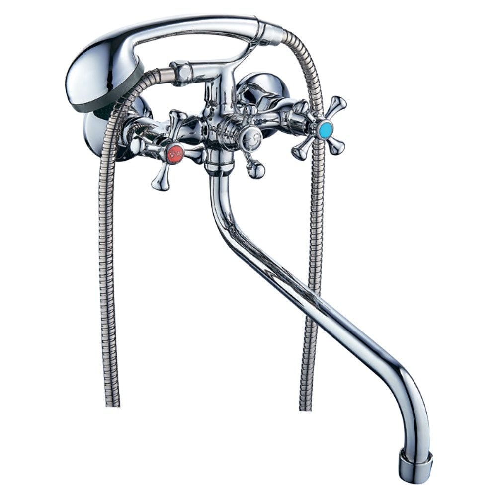 Двохвентильний змішувач для ванни з вигнутим виливом і вбудованим кульовим дивертором. Завдяки класичному дизайну підходить до більшості інтер’єрів ванної кімнати. Міцна конструкція забезпечує тривалий термін служби навіть при інтенсивному використанні.