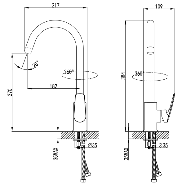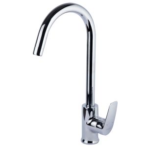 Змішувач кухонний Corso SERIO DC5B146C 35. Одноважільний кухонний змішувач з поворотним виливом 360° і керамічним картриджем 35мм. Виготовлений з латуні з хромованим покриттям та оснащений стійким до корозії кріпленням на шпильці.