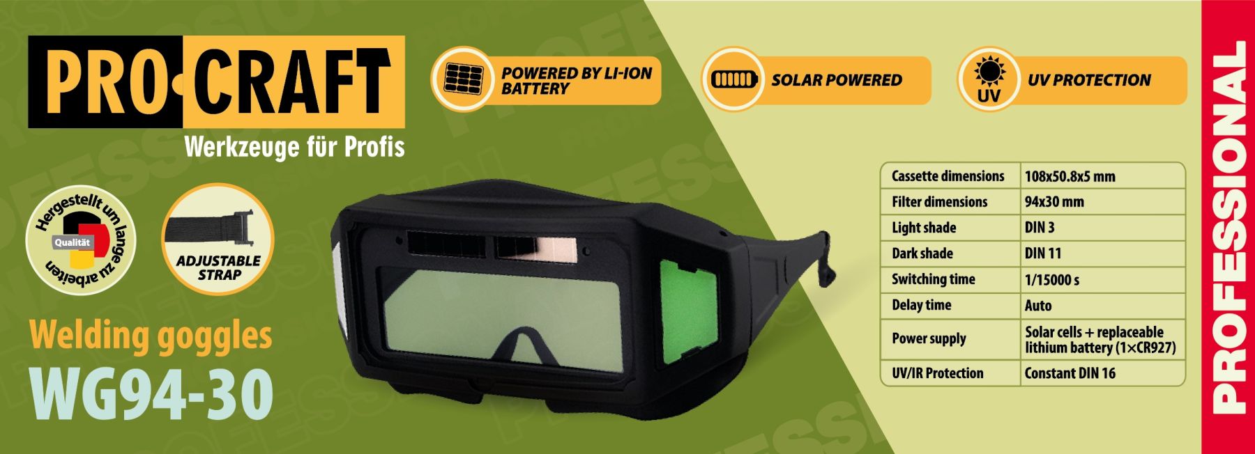 Зварювальні окуляри Procraft WG94-30 – 1 шт.